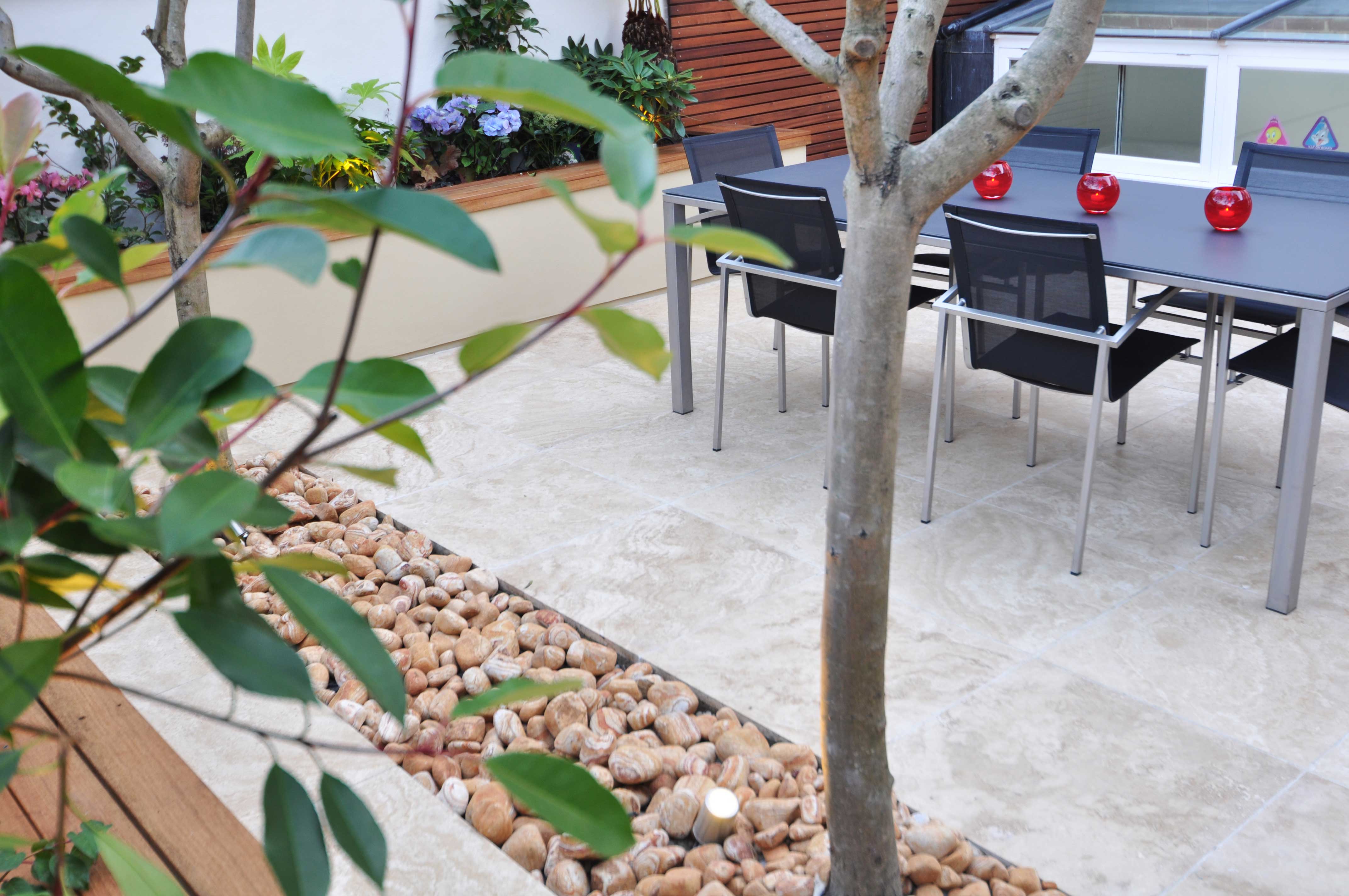 Bamboo Landscaping designed a garden that emulates a typical Greek courtyard, perfect for long summer evenings sitting round the table and talking with friends.